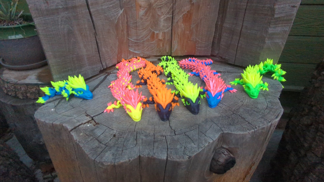 Bring the legendary realm of dragons into the party with these unique UV blacklight reactive 3d printed designs. Whether you're a collector of mythical creatures, an admirer of fantasy art, or simply seeking a unique and captivating gift idea, these dragons make for great centerpieces and toys for kids.